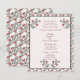 Um bonito convite de festas de Natal de arte popular escandinava, a rosa pálido, com detalhes florais cor-de-rosa e burgundy e verdes. Os detalhes são colocados em uma armação verde que tem florais nos cantos superiores e no fundo.