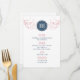 Este menu moderno do casamento do estilo do "art deco" é perfeito para o casamento moderno. Os redemoinhos bonitos e um monograma são caracterizados neste menu. Este menu está em um azul marinho do rosa e da luz. Estilo de Gatsby