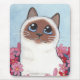 Um gato aguçado de sorriso de Birman do creme e do chocolate que senta-se entre flores cor-de-rosa. Os mousepads da arte do gato fazem grandes presentes para a casa ou o escritório de todo o amante do gato! De uma pintura original. © Lisa Marie Robinson de Copyright. Todos os direitos reservados. É ilegal para usar ou duplicar isto, ou alguma de nossas imagens, sem autorização escrita.