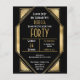 Art Deco aniversário de 40 anos Dourado Convite Preto. Um alternativo de 4,5 pol x 5,6 pol com preço inferior. Disponível em um STOCK DE CARTÃO SEMI-GLOSS 110 lb, que é a opção padrão (mais espesso para convites), OU um STOCK de PAPEL THINNER FINISH 80 lb FINISH (ideal para gabinetes). Os envelopes são um extra opcional e são ligeiramente maiores que o tamanho da placa. . Estilo Glam Art Deco para convidar seus hóspedes para uma noite de 1920 ruidosa com este elegante ouro e convite preto para seu aniversário de 40 anos. Na frente, a tipografia está dentro de um quadro do estilo dos anos 20 e você pode facilmente personalizar a tipografia com seus detalhes. A parte traseira está em ouro e você pode alterar as cores de fundo se desejar, por meio da opção Clique para Personalizar mais.