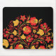 Imagem gráfica da arte popular Hohloma (ou Khokhloma) do russo - pintado tradicional composições florais vermelhas e amarelas, no fundo preto. Hohloma - é uma vila do russo na área de Novgorod, onde este original handcraft começado a partir no século XVII. Esta imagem veio das imagens livres de um dominio público.