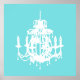 impressão de silhueta de candelabro pop, disponível em preto, branco e rosa. Estilo gráfico divertido.