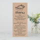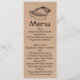 O menu recepção de casamento do artesanato olha para a praia, com gráficos de fundo de artesanato marrom e uma ilustração de uma casca de concha preta, no topo. Personalize todo o texto para o seu dia especial. Os produtos correspondentes estão disponíveis.