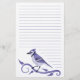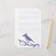 O papel de letra com um grande jay azul e as videiras projetam na parte inferior. O papel tem as linhas que fluem em torno do pássaro. Isto é ideal para letras pessoais ou notas.