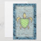 Pintura de Digitas de uma tartaruga de mar com um escudo modelado octogonal verde. Arte da tartaruga de mar de wingedturtle.com. Artigos de papelaria alinhados.