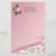 Os artigos de papelaria cor-de-rosa bonito, com trabalhos de arte do vintage de um cor-de-rosa aumentaram com um pássaro azul, no canto superior esquerdo. Gráficos de uma ilusão óptica, na parte inferior da página, onde o papel parece ondular acima e mostrando um teste padrão do verde, e o branco do rosa do rosa. Personalize o texto, na parte superior do papel para serir suas necessidades. Maneira bonita de trazer para trás a arte da escrita da letra.