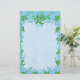 Tartaruga de mar verde no estilo do entalhe contra fundo azul checkered. Papel vazio dos artigos de papelaria com uma beira estilizado da chama.