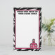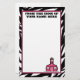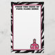 Artigos de papelaria que caracterizam uma beira do impressão da zebra e uma guarnição cor-de-rosa. Logotipo cor-de-rosa da escola no canto direito inferior. Texto no centro superior. A linha 1 lê "da mesa" da linha 2 lê "seu nome aqui" que todo o texto pode ser personalizado. Se você deseja mudar o tamanho de pia batismal, estilo, ou colore você pode usar a ferramenta de design.