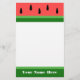 Os artigos de papelaria que caracterizam uma melancia inspiraram a beira na parte superior. Personalize com seu nome no fundo sobre a harmonização da beira verde.