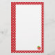 Caracteriza o fundo vermelho e branco bonito das bolinhas e uma morango bonito.