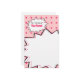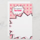 O pop art inspirou os artigos de papelaria que caracterizam um fundo cor-de-rosa com um teste padrão de intervalo mínimo cor-de-rosa. O design branco pequeno lê "da mesa de" (personalize com seu nome.) Design maior para texto escrito à mão. Artigos de harmonização Look for tais como etiquetas do porte postal e de endereço na categoria do "pop art" do Paperie de Jill.