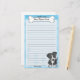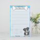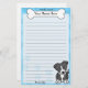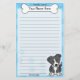 Artigos de papelaria de Kawaii border collie do divertimento com uma raça preto e branco do cão dos desenhos animados no canto direito mais baixo. A parcela superior pode imediatamente ser personalizada com seu nome dentro do osso grande do cachorrinho. O fundo da beira e do papel é azul.