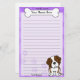 Artigos de papelaria de Kawaii St Bernard do divertimento com uma raça do cão dos desenhos animados no canto direito mais baixo. A parcela superior pode imediatamente ser personalizada com seu nome dentro do osso grande do cachorrinho. O fundo da beira e do papel é roxo.