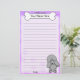 Artigos de papelaria de prata da caniche de Kawaii do divertimento com uma raça do cão dos desenhos animados no canto direito mais baixo. A parcela superior pode imediatamente ser personalizada com seu nome dentro do osso grande do cachorrinho. O fundo da beira e do papel é roxo. Outro reveste as cores disponíveis. Brinquedo bonito, miniatura, ou artigos de papelaria da caniche padrão!