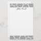 Os artigos de papelaria caracterizam meu design de prata da chama… uma tomada no damasco no círculo. O design seria bonito usado para escrever letras do Natal porque se assemelha a um floco de neve. Mude a cor do fundo para um olhar completamente diferente.