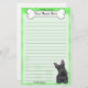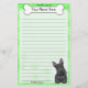 Artigos de papelaria coloridos do Scottie de Kawaii com um cão do preto dos desenhos animados no canto direito mais baixo. A parcela superior pode imediatamente ser personalizada com seu nome dentro do osso grande do cachorrinho. O fundo da beira e do papel é verde.