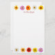 Quem não sorriria olhando estes artigos de papelaria alegres? Uma grade de flores brilhantes alinha em uma grade contra o branco limpo. Adicione seu nome ou todo o texto. Excelente para artigos de papelaria ou notas. Disponível com produtos de harmonização.