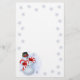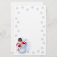 Artigos de papelaria do feriado do divertimento com o boneco de neve que guardara um bastão de doces. O fundo é moldado com flocos de neve de queda.