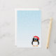 Espalhe o espírito do Natal com estes artigos de papelaria bonitos do pinguim. Você pode mesmo personalizá-los com uma mensagem do feriado ou seu nome. Featues dos artigos de papelaria um pinguim que veste um chapéu do papai noel contra um fundo do floco de neve.