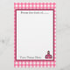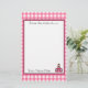 Artigos de papelaria que caracterizam uma beira cor-de-rosa do guingão com guarnição cor-de-rosa. Logotipo cor-de-rosa da escola no canto direito inferior. O texto lê "da mesa de…" Personalize com seu nome.