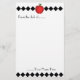 Artigos de papelaria para os professores que caracterizam uma ilustração vermelha da maçã no centro superior. Design preto do argyle em cada lado e ao longo da parte inferior. O texto superior lê "da mesa ......." do texto inferior lê "....... seu nome aqui" personaliza com seu próprio nome. Pia batismal parisiense. Você pode mudar o tamanho de pia batismal, o estilo, a posição, ou a cor usando a ferramenta de design se você deseja.