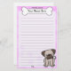 Pug de Kawaii do divertimento com uma raça do cão dos desenhos animados no canto direito mais baixo. A parcela superior pode imediatamente ser personalizada com seu nome dentro do osso grande do cachorrinho. O fundo da beira e do papel é cor-de-rosa.