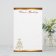 Papel de carta festivo do feriado, com os gráficos do ouro elegante que olham o Natal bordado, na parte inferior, e em listras vermelhas e goldtone na parte superior e na parte inferior da página. Os cumprimentos da estação no texto vermelho do roteiro na parte superior. Personalize para adicionar em casa o texto adicional ou o uso em sua própria impressora. Papel bonito para sua letra anual do Natal.