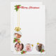Dê a sua letra anual do Natal um bônus adicionado, com estes artigos de papelaria feitos sob encomenda do feriado da foto. Os gráficos coloridos de ornamento e de azevinho da bola do Natal fazem para quadros festivos para suas fotografias, nestes artigos de papelaria do feriado, com texto vermelho, no Feliz Natal superior da leitura. Personalize os quatro quadros do ornamento com suas próprias fotografias. Você pode personalizar estes artigos de papelaria para adicionar seu próprio texto. Grande maneira de mostrar a família e os amigos pequenas notícias pequenas de sua vida por o ano passado.