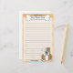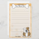 Artigos de papelaria ingleses coloridos do buldogue de Kawaii com uma raça do cão dos desenhos animados no canto direito mais baixo. A parcela superior pode imediatamente ser personalizada com seu nome dentro do osso grande do cachorrinho. O fundo da beira e do papel é alaranjado. Brown e o branco revestem a cor.