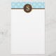 Artigos de papelaria customizáveis que caracterizam um monograma em um fundo das listras.