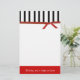 Papel de carta bonito com um encabeçamento feito em listras preto e branco, em uma fita vermelha e em uma área vermelha do pé de página na parte inferior, com umas citações subtis. Grande vista estacionário para algum dia.