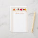 Artigos de papelaria que caracterizam ilustrações de um carretel da linha alaranjada, das tesouras, de um coxim do pino, e de amostras de folha do tecido na parte superior. Personalize com seu nome no auge da seção branca com beira do ponto.