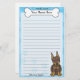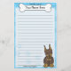 Artigos de papelaria coloridos do Pinscher do Doberman de Kawaii com uma raça do cão dos desenhos animados no canto direito mais baixo. A parcela superior pode imediatamente ser personalizada com seu nome dentro do osso grande do cachorrinho. O fundo da beira e do papel é um azul brilhante. Este é o vermelho e o doberman tan.