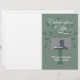 Celebração do programa memorável do evento da vida com texto inteiramente customizável. Árvore do design da vida no fundo dos verdes prudentes na parte dianteira da parte externa, folha da dobra ao folheto do formulário. Personalize todo o texto para seu evento. Clique sobre o modelo da foto e transfira arquivos pela rede sua própria foto, ou apenas suprima d se você não quer uma foto. Uma celebração do evento de vida é uma maneira maravilhosa de compartilhar de memórias e pagar o tributo a um membro da família ou a um amigo, além do que, ou em vez, de um serviço fúnebre tradicional. Imprimiu ambos os lados para dobrar-se em uma brochura. SEJA CERTO PERSONALIZAR AMBOS OS LADOS, PARTE DIANTEIRA E PARTE TRASEIRA DA FOLHA.