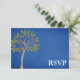 Uma placa de resposta RSVP com tema de árvore da vida. Apresentando uma árvore espiral sobre um fundo azul escuro.
