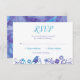 Árvore azul roxa e verde moderna de cartões de resposta Bat Mitzvah RSVP. Este design único apresenta uma árvore de cor d'água, flor e aves.