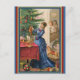 Um belo cartão vitoriano, com uma mãe a decorar a árvore de Natal com os seus filhos a olhar para o espanto. Brinquedos como bonecas, tambores estão no chão esperando para serem embrulhados.