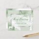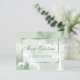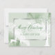 NOVO! Barato Leve Cartões de natal com um belo Feliz Natal em caligrafia rolante - em uma moldura prateada - desenho abstrato de tinta alcoólica em tons verdes de sábio com cervo de silhueta em branco e uma árvore de inverno também em branco - mensagem personalizada no verso