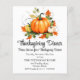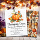 Uma bela ilustração de Ação de Graças com abóboras e folhas coloridas de outono num lado e xadrezes de outono com folhas e abóboras do outro lado. Você pode personalizar este Convite com seus detalhes de janto.