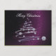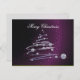Uma árvore de Natal abstrata elegante com fitas e bolas nas máscaras do cinza de prata e de sparkling stars no fundo roxo escuro. Personalize-a com seu texto.