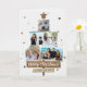 Crie uma colagem de fotos de Natal sazonal com cinco fotos afixadas em uma haste de madeira para moldar uma árvore de Natal. Decorados com dois cartazes de madeira e as estrelas bege e castanho sobrepõem-se. presente de Feriado excelente para sua família e amigos. Para esta colagem, você precisa de quatro imagens quadradas e uma foto com alinhamento horizontal para uma saudação especial e especial de Feliz Natal.