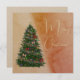 Uma bela árvore de natal com ornamentos, fitas, luzes, granadas, cones de pínus. E uma mensagem: Feliz Natal!
