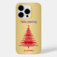 Este elegante, único, moderno, na moda, desenhado à mão, design apresenta uma árvore de Natal com detalhes intrincados em cores vermelhas sobre fundo de folha de ouro falso com ornamentos. O design também apresenta um nome personalizado na topografia do na moda. Este item é perfeito para a época festiva e pode ser um excelente presente para seus amigos e família.