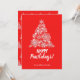 Folhetos felizes, flocos de neve impressos em pata em cor branca formando árvore de Natal.design ideal para amantes de cachorros, cuidados com animais de estimação, salão de aliciamento de cachorros e muito mais.