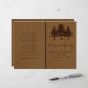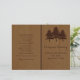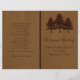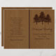 Árvore da cerimônia de casamento da madeira marrom e programa de dobragem de festas com três coníferas em grãos de madeira e texto em castanho. Este design de casamento moderno e na moda é um modelo completamente personalizável e faz parte de um conjunto de casamento perfeito para um casamento da floresta russa. Você terá que dobrá-lo no centro. Escolha apenas este tipo de valor de papel à medida que ele se dobra bem. Observe que não há madeira real apenas uma imagem IMPRESSA.