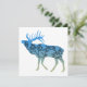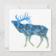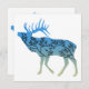 Esta design é o contorno de um alce com um gradiente de cor azul a bege e e a silhueta de um dentro de árvore.