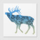 Esta design é o contorno de um alce com um gradiente de cor azul a bege e e a silhueta de um dentro de árvore.
