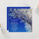 A bela fotografia de uma árvore maravilhosa coberta de geada faz um convite de casamento incrível. A geada cobriu as árvores criando uma bela terra maravilhosa do inverno. A lua ainda está no céu.