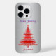 Este elegante, único, moderno, na moda, desenhado à mão, design apresenta uma árvore de Natal com detalhes intrincados em cores vermelhas sobre fundo falso prateado com ornamentos. O design também apresenta um nome personalizado na topografia do na moda. Este item é perfeito para a época festiva e pode ser um excelente presente para seus amigos e família.