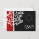 Placa de resposta de RSVP do Bar de Vida Mitzvah, em vermelho e preto moderno.